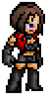 However, when on her own away from Thor, she dressed significantly more provocatively, wearing a tight black tube top under a red vinyl vest with popped lapels, a velvet collar around her neck, elbow-length black velvet gloves, a short black miniskirt and tall vinyl stiletto-heeled boots that reach up to her mid thigh.