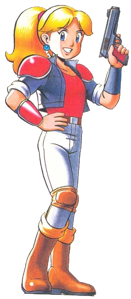 Cathy is Roddy's childhood friend and partner in the bounty hunting business. She usually finds information of their gigs and keeps track of their finances. In order to keep up with Roddy, she installed a transformer mechanism to her suit that allows her to stretch her arms. She fights alongside Roddy wherever he goes.